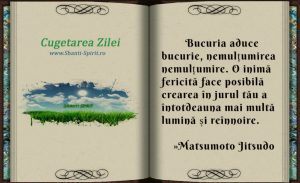 Bucuria aduce bucurie, nemulțumirea nemulțumire. O inimă fericită face posibilă crearea în jurul tău a întotdeauna mai multă lumină și reînnoire. »Matsumoto Jitsudo